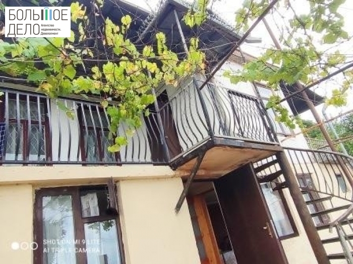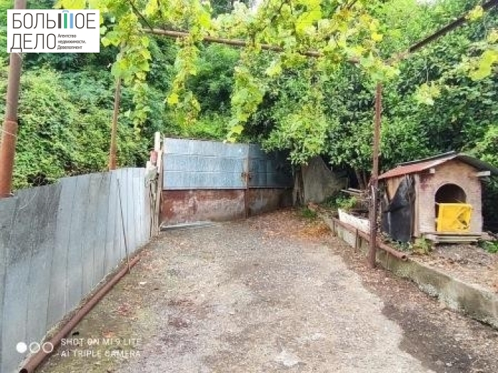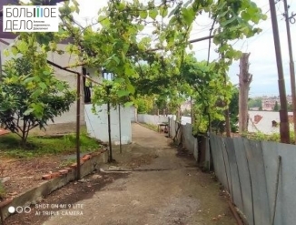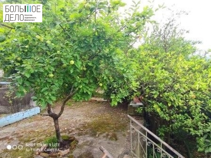 Территория: дом огорожен забором из металлических секций, вдоль задней части строения залита опорная стена. Заезд во двор, ворота. Двор забетонирован. Капитальный гараж из блоков построен в конце двора. На участке растут плодовые и цитрусовые деревья: мандарины, лимоны, яблоки, хурма, инжир, виноград.