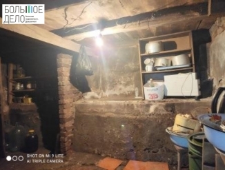 В цокольном этаже расположена кухня, отдельная столовая, подвальное помещение с полками для хозяйственных нужд. В кухне пол выложен плиткой. Столовая обшита деревянной вагонкой, пол- ламинат. С торца - вход в помещение из 2-х смежных комнат, где расположены ванная и санузел, место для стирки, умывания.